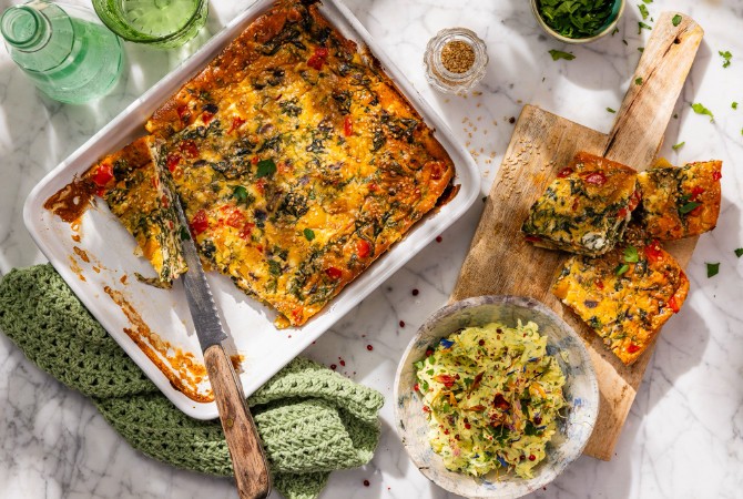 Place in the oven for 35–40 minutes, until golden brown and set.