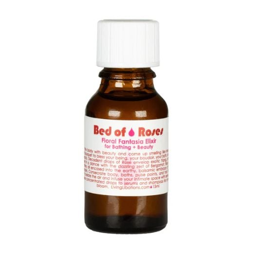 Living Libations Bed of Roses Floral Fantasia Elixir is a romantic essence—a lush, rosy bouquet designed to enrich your presence, your bedroom, your bath, and your life with its exquisite aroma.